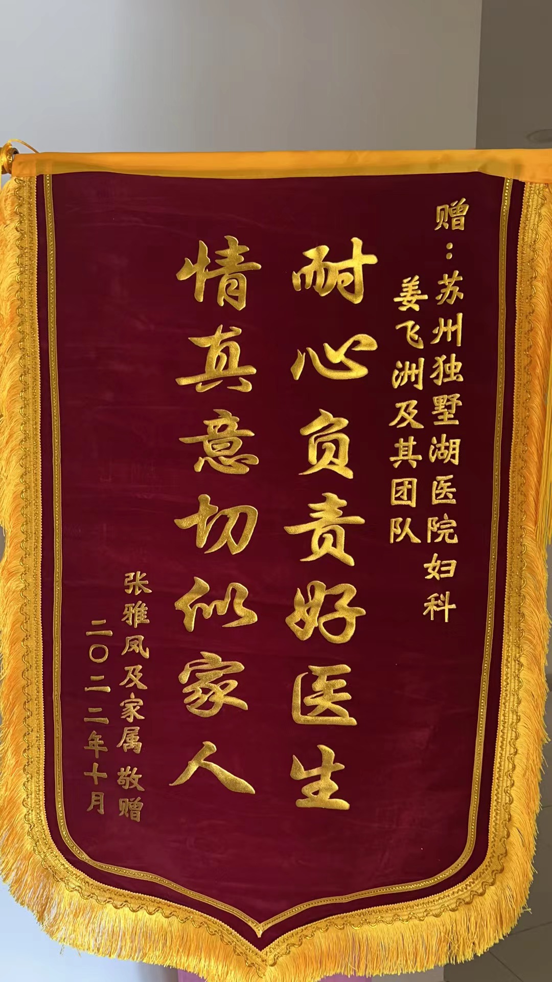 患者张女士及家属赠送锦旗感谢我院妇产科姜飞洲医生及其团队