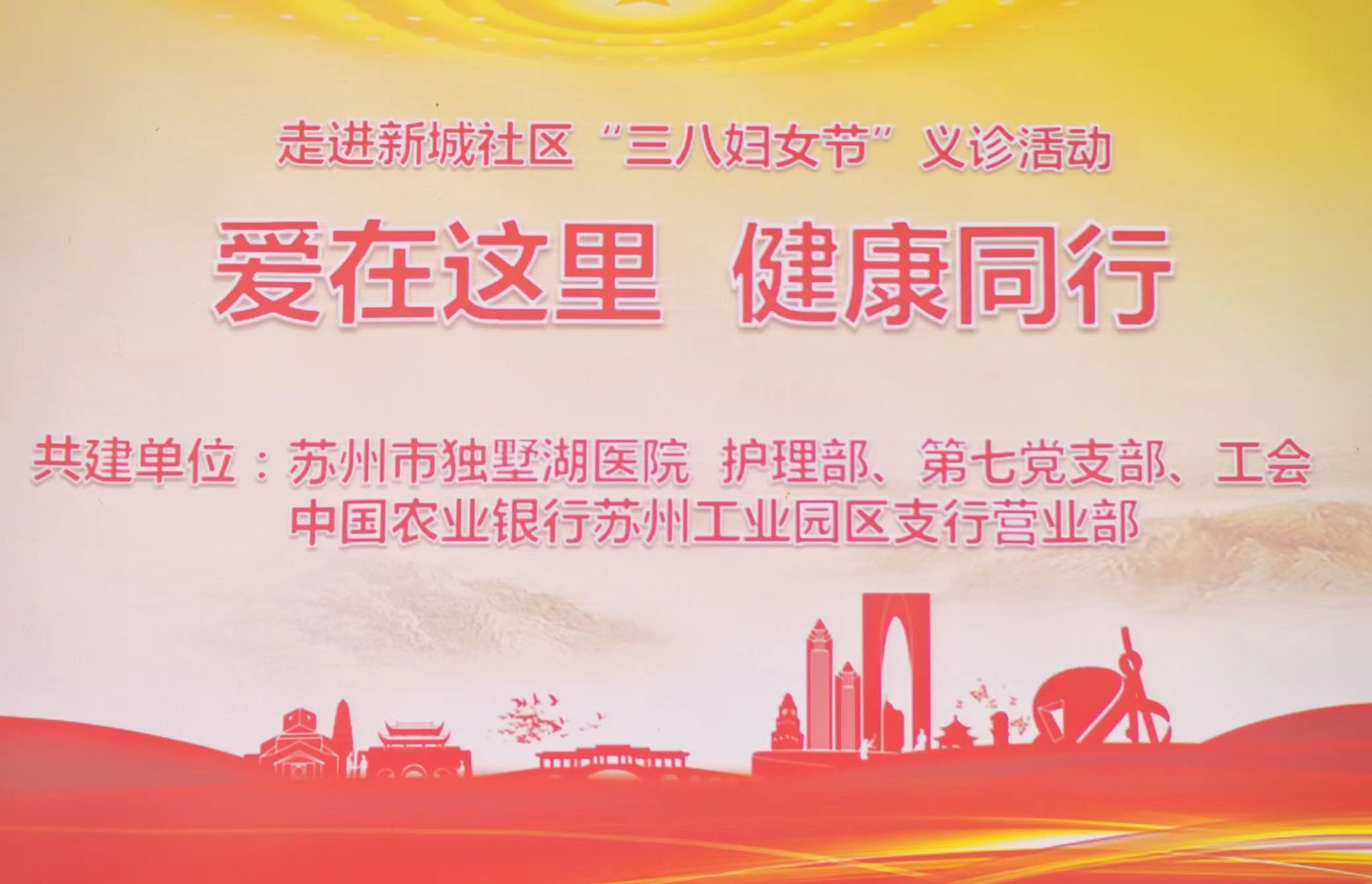 春暖三月,“花”生美好。3月8日下午,苏州大学附属独墅湖医院护理部联合中国农业银行开展了以“党建引领,携手共建,关爱健康”为主题的“三八妇女节”党建义诊活动。此次义诊共接待咨询近150余人次,测血压100余人次,测血糖100余人次,发放宣教手册200余份。