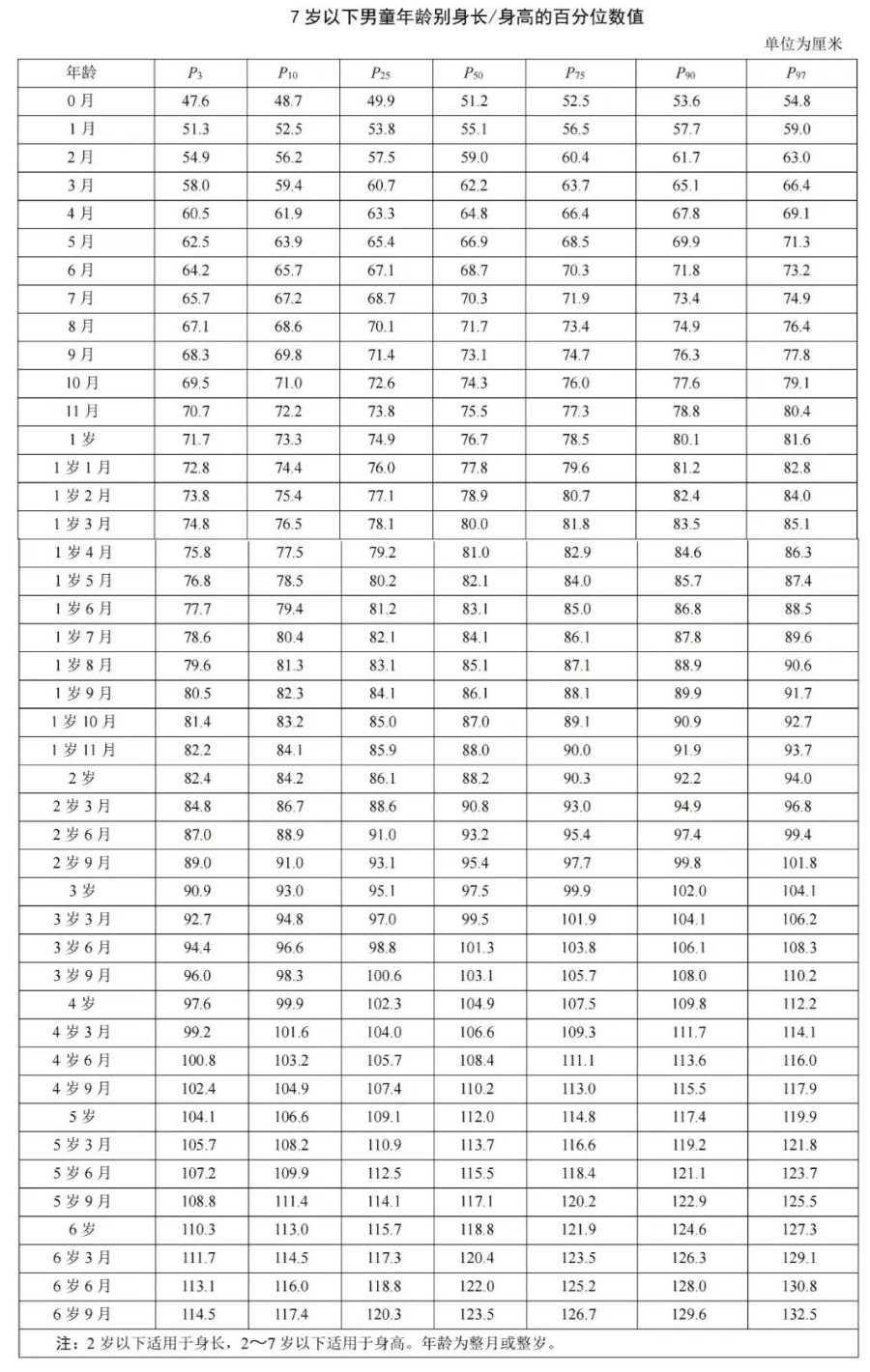 各位家长现在一定迫不及待地想知道自己孩子的身高有没有达标吧,那么通过对照下面的表格就可以轻松判断了。