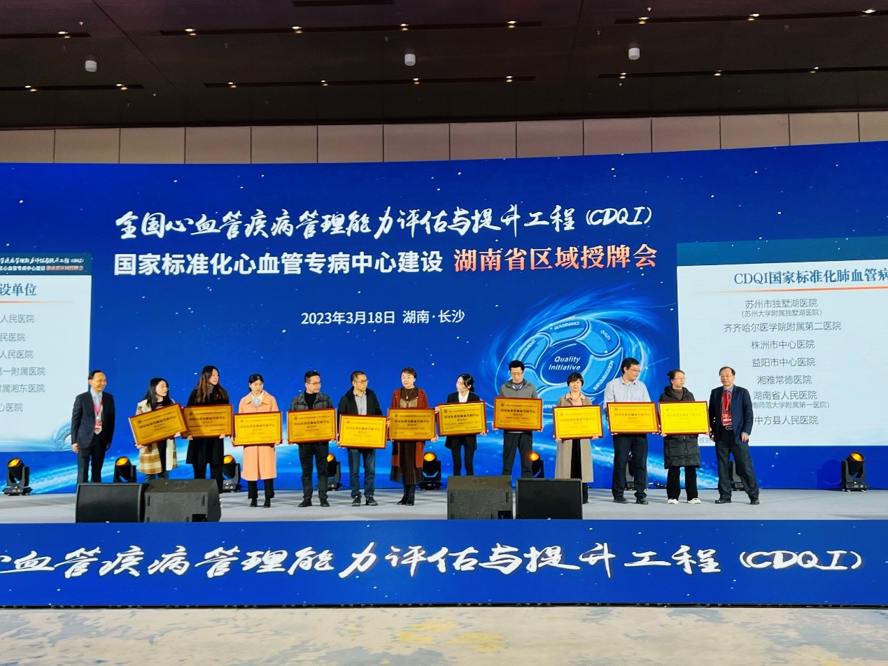 榜上有名:我院被评为CDQI国家标准化肺血管病建设单位