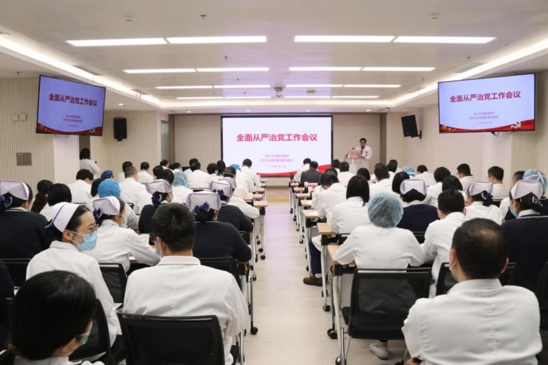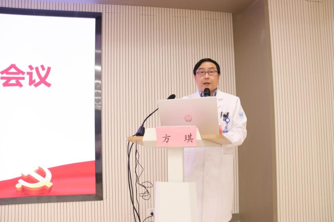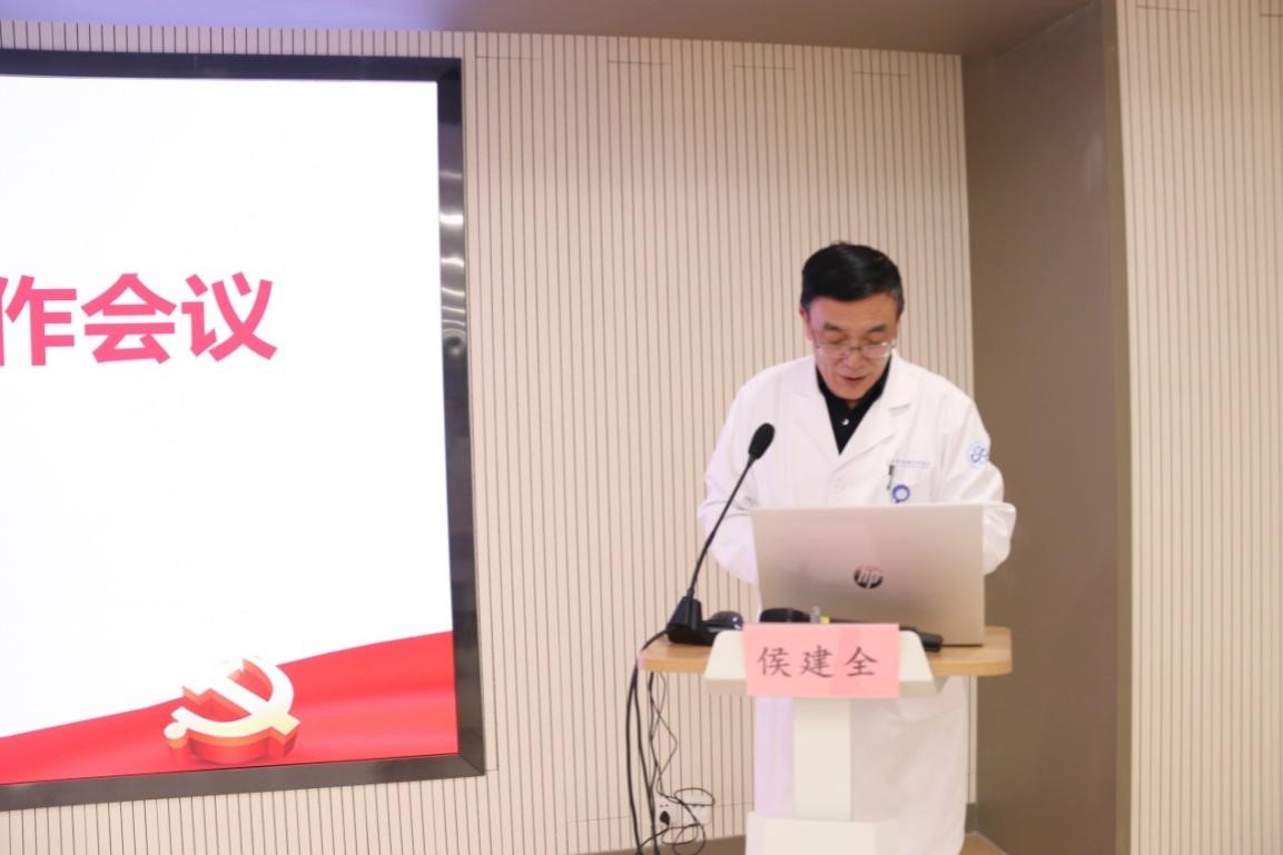 院党委书记侯建全对《国家卫生健康委办公厅关于近期医药购销领域和医疗服务中不正之风典型案件的通报》进行内部传达,并作了题为《乘势而上 抢抓机遇 全面推动医院高质量发展再上新台阶》的工作报告。报告总结了2022年医院全面从严治党工作,并对2023年全面从严治党主要工作任务进行了部署。侯书记强调,2023年是全面贯彻党的二十大精神的开局之年,是实施“十四五”规划承上启下的关键之年,要想实现既定目标,为创建三甲医院开好局、起好步,关键在全面从严治党。对此,他提出六点要求:一是要加强政治建设,切实提高政治站位,全面落实意识形态工作责任制;二是要加强思想建设,切实强化理论武装,扎实推动新时代宣传思想工作各项重点任务落实;三是要加强组织建设,切实发挥堡垒作用,充分发扬“四敢”精神,建立健全人才培养机制;四是要加强资源配置建设,优化医院发展空间,为园区人民提供更优质、更安全、更高效的医疗卫生服务;五是要加强党风廉政建设,切实化解廉政风险,完善廉政风险防控机制;六是要加强精神文化建设,以党建引领、文化铸魂,实施医院文化推进工程。