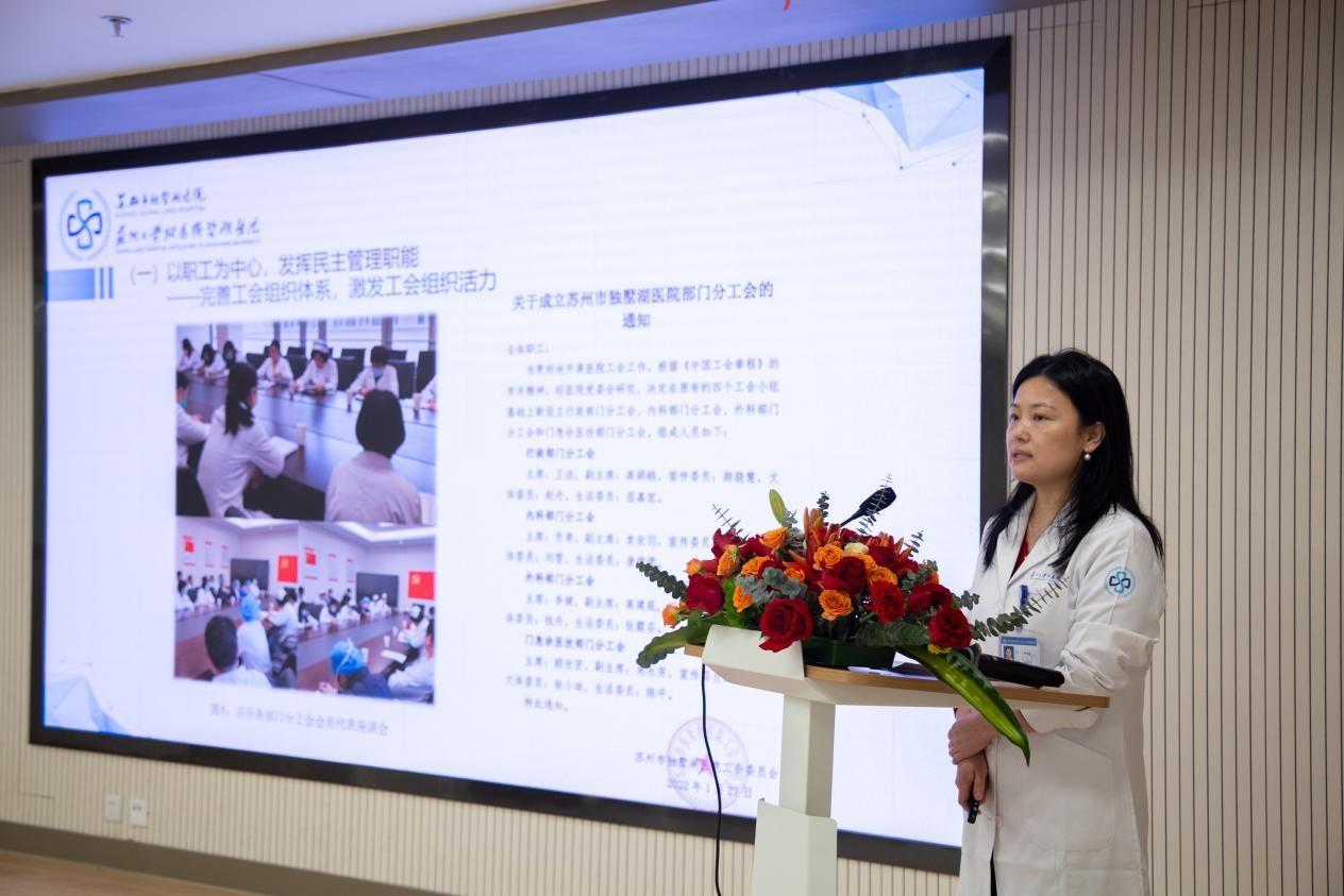 工会经费审查委员会主任、肾内科主任乔青从工会经费总体管理、经费收缴情况及经费使用情况向大会做《苏州市独墅湖医院2022年工会收支报告》。2023年,工会财务将进一步加强预算管理,不断调整和优化支出结构,收好、管好、用好经费,为工会开展好各项职工活动奠定坚实基础。