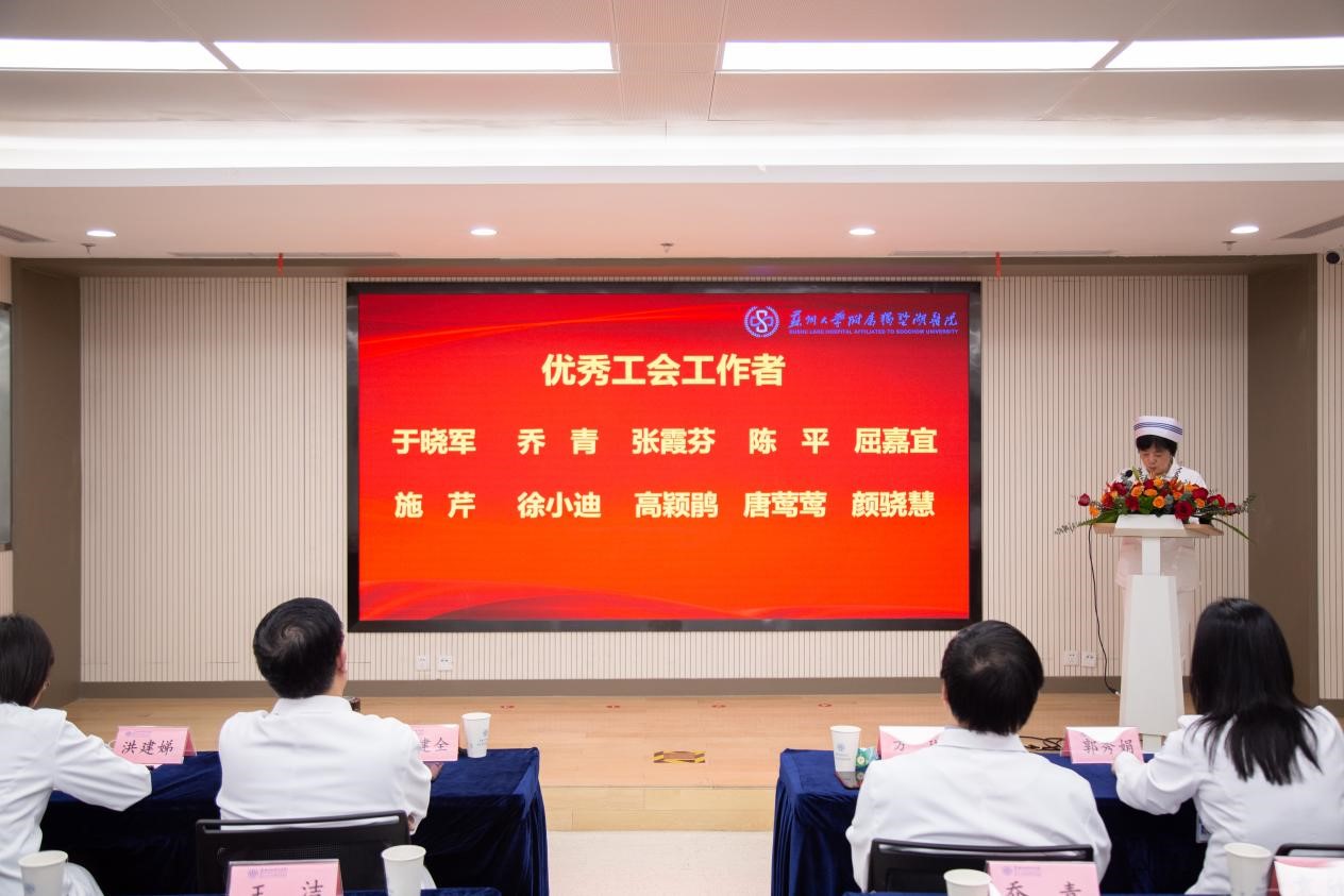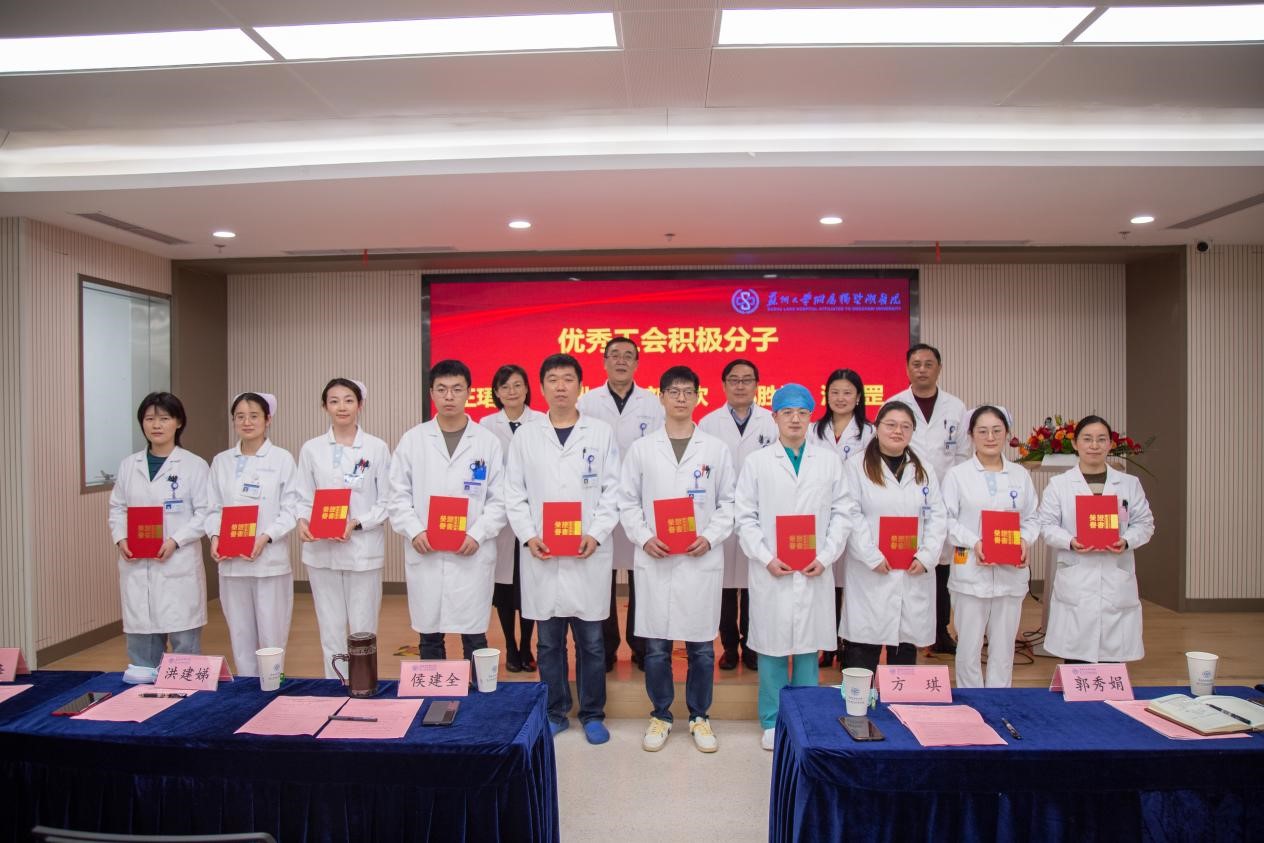 会上,对在工会工作中表现突出的10名优秀工会工作者和10名优秀工会积极分子进行了表彰。工会副主席、护理部主任王洁宣读《关于表彰2022年度优秀工会工作者和优秀工会积极分子的决定》。党政办公室颜骁慧和骨科蒋伟刚分别代表优秀工会工作者和优秀工会积极分子做交流发言。