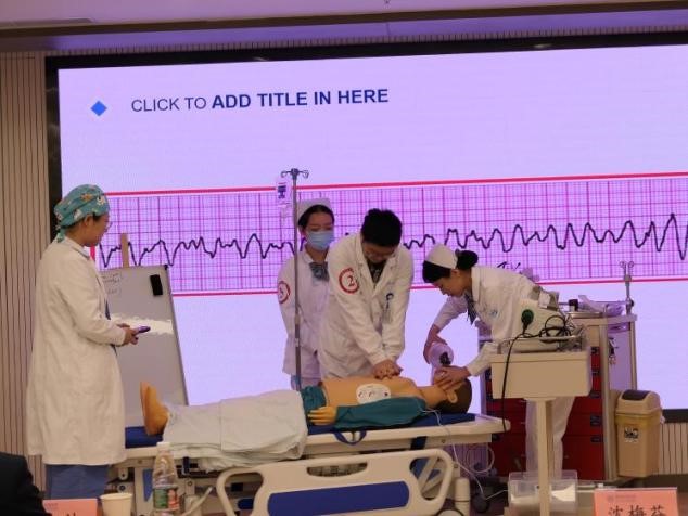 培训现场,急诊科采用高级生命支持模拟演示—导师点评—反馈问题—回顾总结的方式进行“场景模拟”。在急诊科戴宁宁护士长对演练过程中涉及的重点步骤及知识点详细耐心的阐释下,学员们对ACLS的相关操作有了具象化的认识。