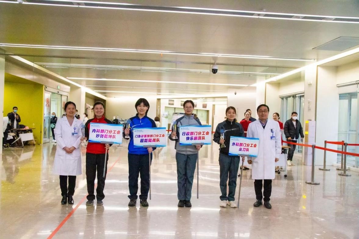 最终,首届趣味运动会团体总成绩揭晓:门急诊医技部门分工会荣获团体第一名,行政部门分工会获团体第二名,外科部门分工会和内科部门分工会并列团体第三名。