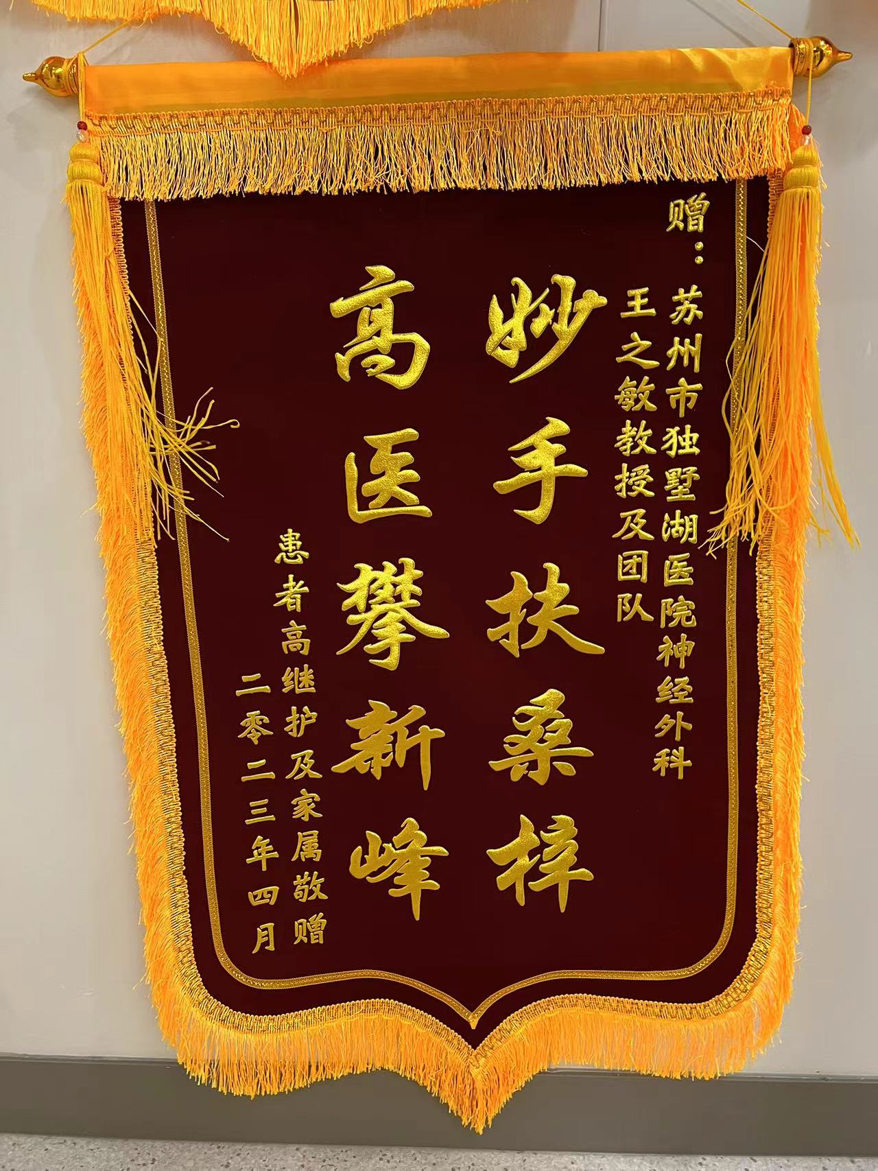 患者高先生赠送锦旗感谢我院神经外科王之敏主任医师团队