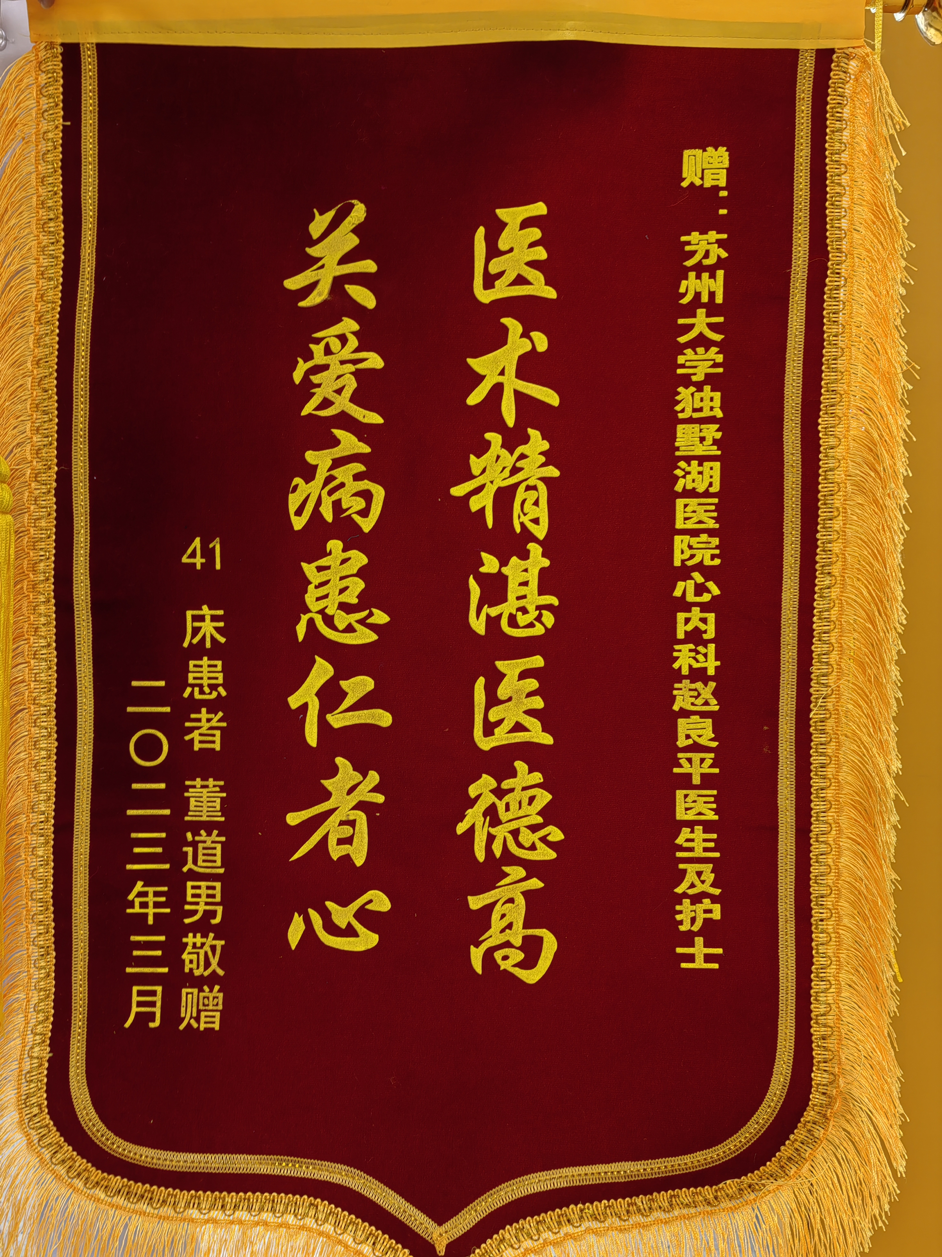 患者董先生赠送锦旗感谢我院心内科赵良平副主任医师及全体护士