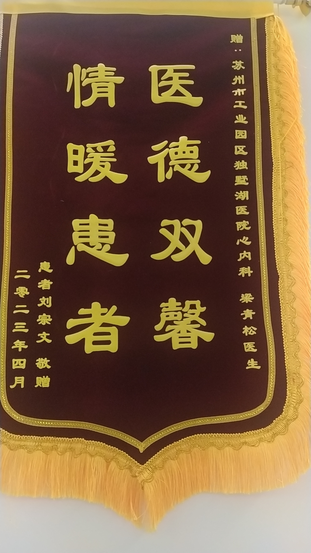 患者刘先生及家属赠送锦旗感谢我院心内科梁青松医生