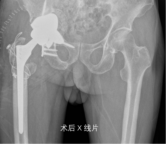 就在一筹莫展之际,一位在我院治好了关节疾病的亲戚建议黄老先生来苏州看看,于是决定来到我院骨科就诊。我院骨科林俊主任医师在查看影像资料后发现,患者髋臼侧假体已完全移位并部分脱入盆腔,唯有翻修手术才能让患者再次站起来。患者入院后在骨科姜为民主任带领下,全科上下极为重视。在完成了全部检查后,姜主任多次组织全科疑难病例讨论,详细分析病情,群策群力,针对各种可能的情况制定相应的对策。