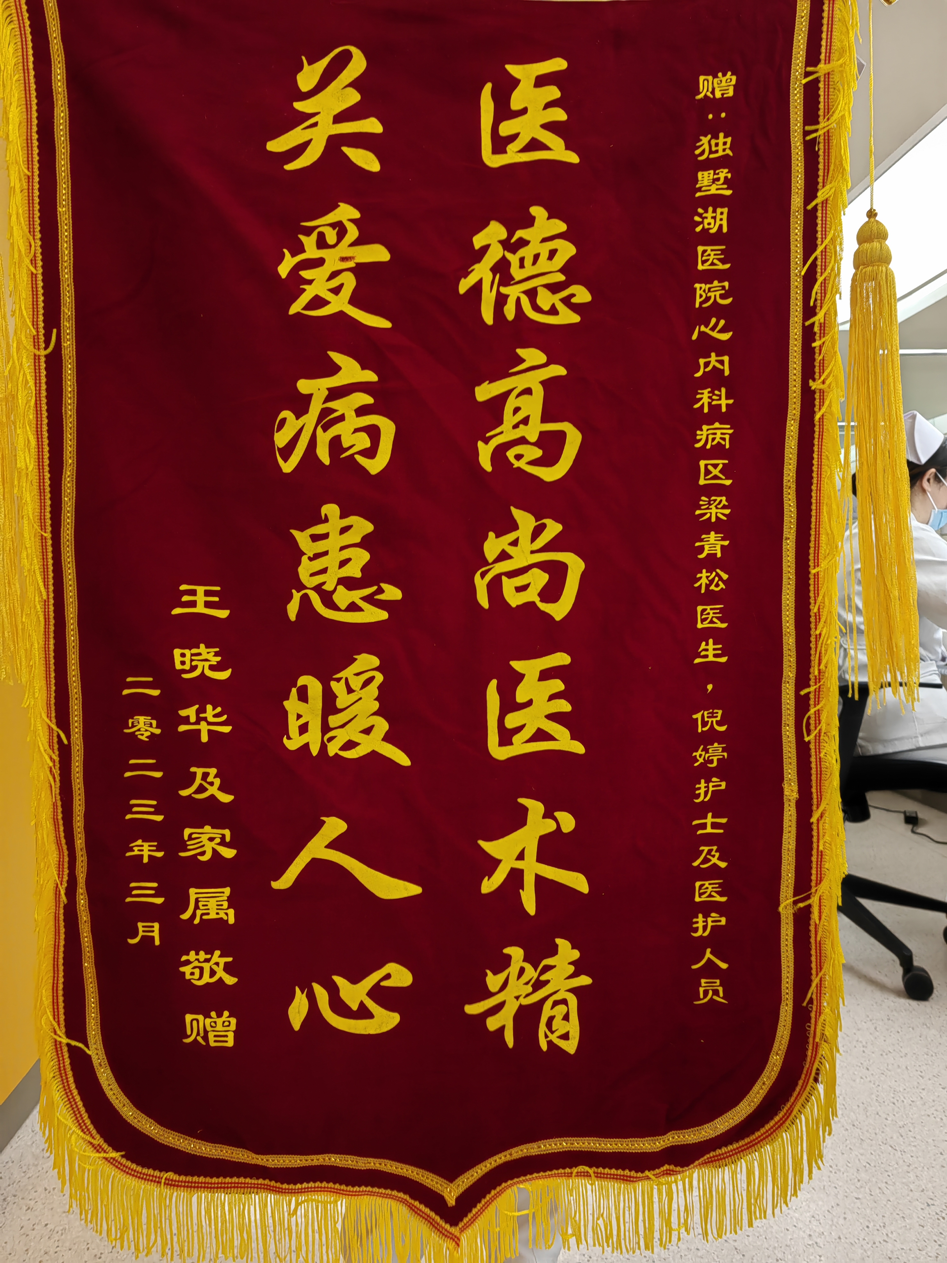 患者王先生及家属赠送锦旗感谢我院心内科梁青松医生、倪婷护士及全体医护