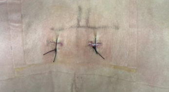 (两道1cm长手术切口)