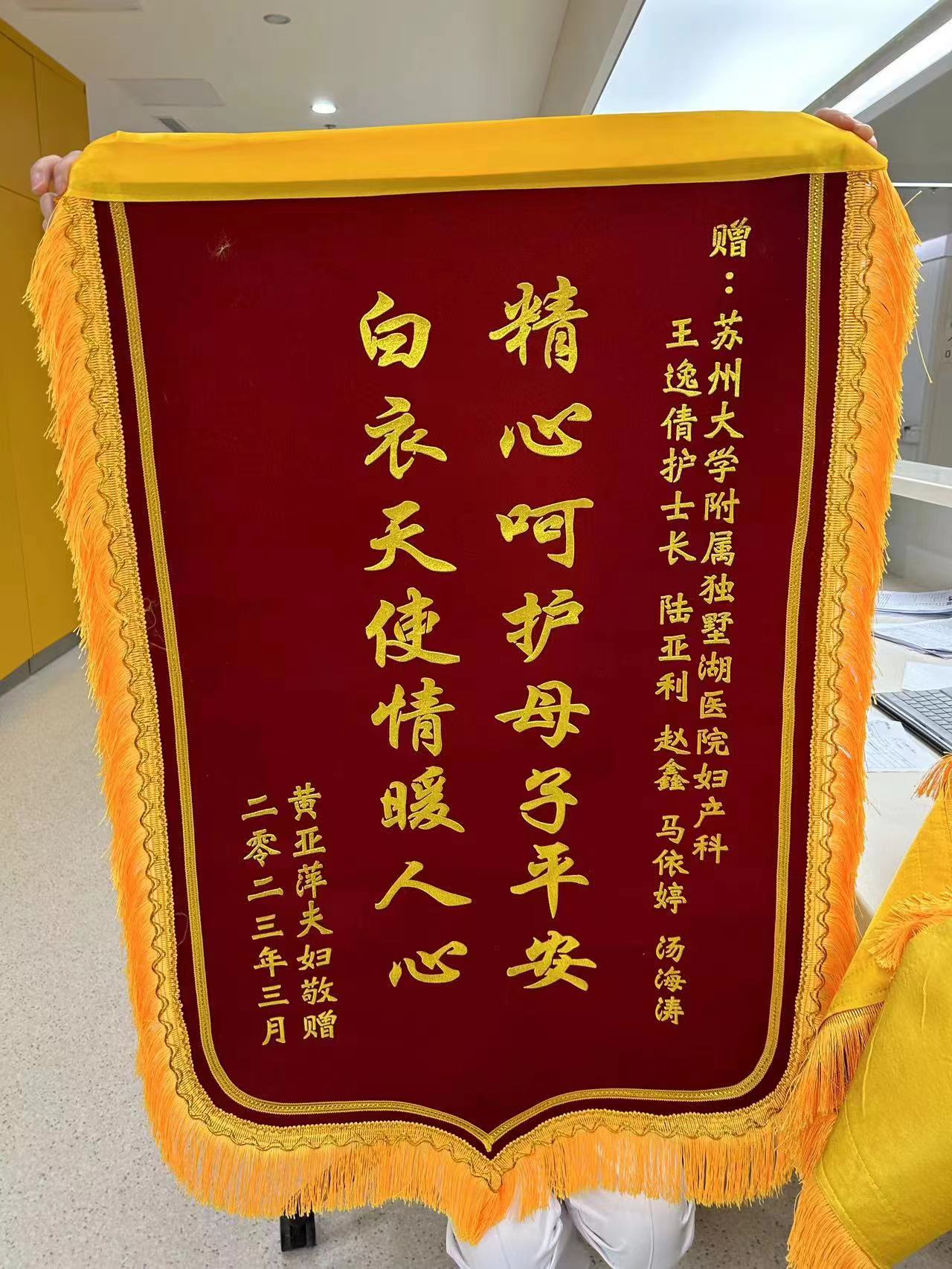 患者黄女士及其家属赠送锦旗感谢我院妇产科王逸倩护士长、陆亚利、赵鑫、马依婷、汤海涛护士