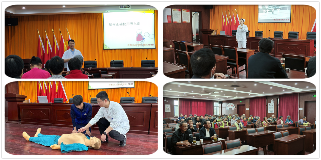 此次活动分为健康讲座和义诊两个部分。呼吸与危重症医学科护士长袁欣羽主持了关于新冠肺炎及甲型H1N1流感的防范和治疗的讲座。通过详细的介绍和实用的防护指南分享让居民了解相关疾病的防治方法,提高了居民的健康意识和紧张情绪应对能力。游枫烨护士分享了哮喘的注意要点和吸入剂使用方法,帮助哮喘患者规避风险。王建堂护士讲解了心肺复苏的急救技术和技巧,让居民进一步掌握应对突发状况的方法和急救技能。在整个健康讲座中,现场观众踊跃提问,与医护人员积极互动,收获颇丰。