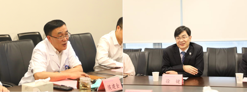 交流会上,侯建全书记介绍了我院的运行状况及未来发展定位。徐键书记就浙大四院的发展历程及特色路径做了具体的分享。他表示,独墅湖医院在两年中取得如今的成果令人瞩目,尤其在科研项目方面值得学习。此外,与会人员就如何提高医疗服务质量、优化管理流程等问题进行了讨论。