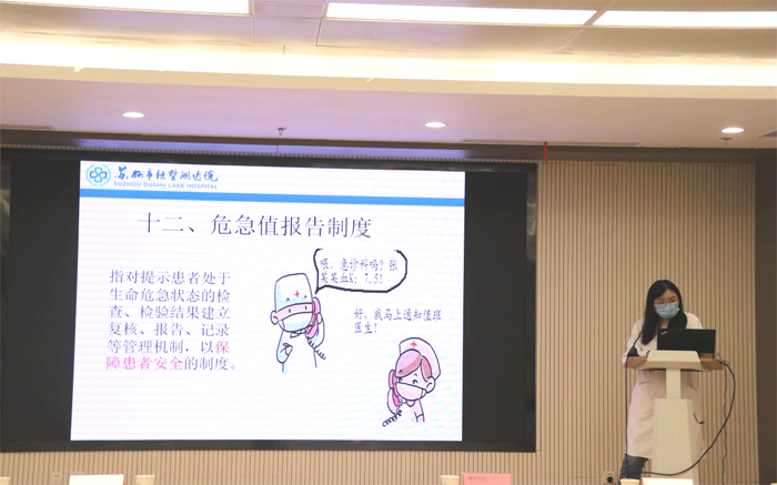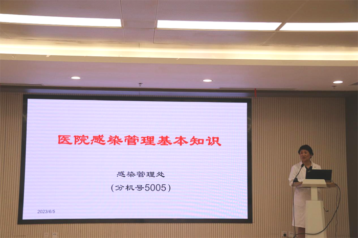 随后的培训会上护理部、大科护士长沈梅芬教授结合具体案例向同学们传授实习过程中可能会用到的医患沟通技巧肾内科董婷向同学们强调了实习过程中病例书写重要性、作用相关法律法规,并对病例书写原则与要求进行细致讲解;感染管理处王秀珍处长讲解医院感染管理相关知识并提出了疾病预防相关要求;医务处魏畅向实习同学强调了医院运行中的各项核心制度和工作规范。最后同学们就培训过程中相关问题积极提问,在深入的交流探讨和答疑解惑中,本次培训会圆满结束。