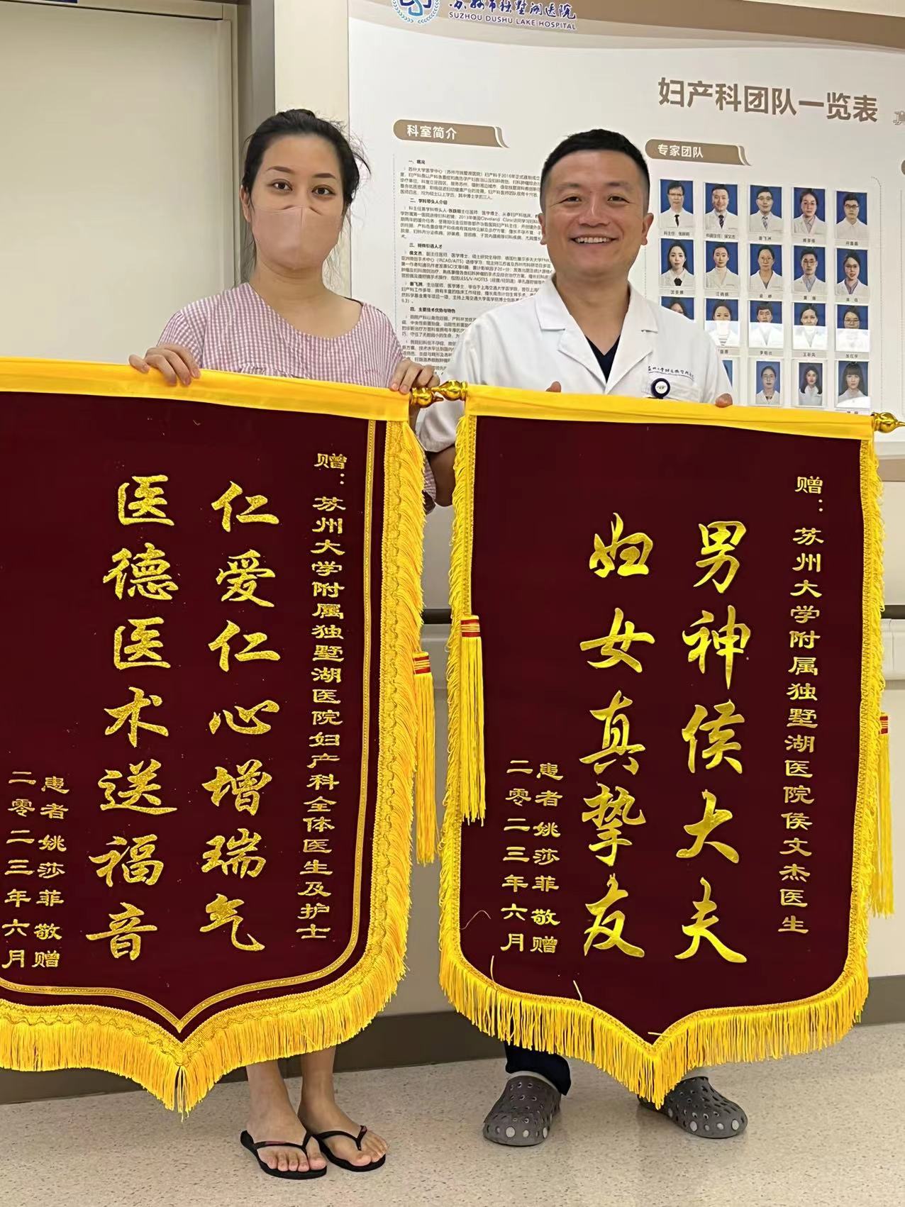 患者姚女士赠送锦旗感谢我院妇产科侯文杰副主任及全体医护