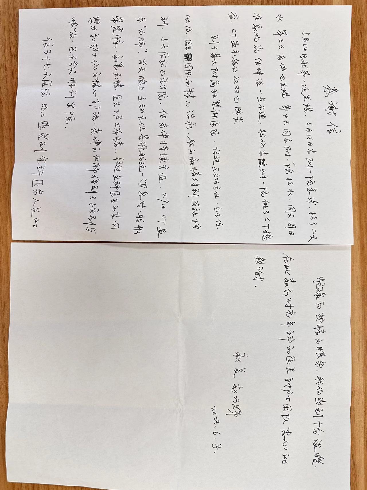 • 感谢信