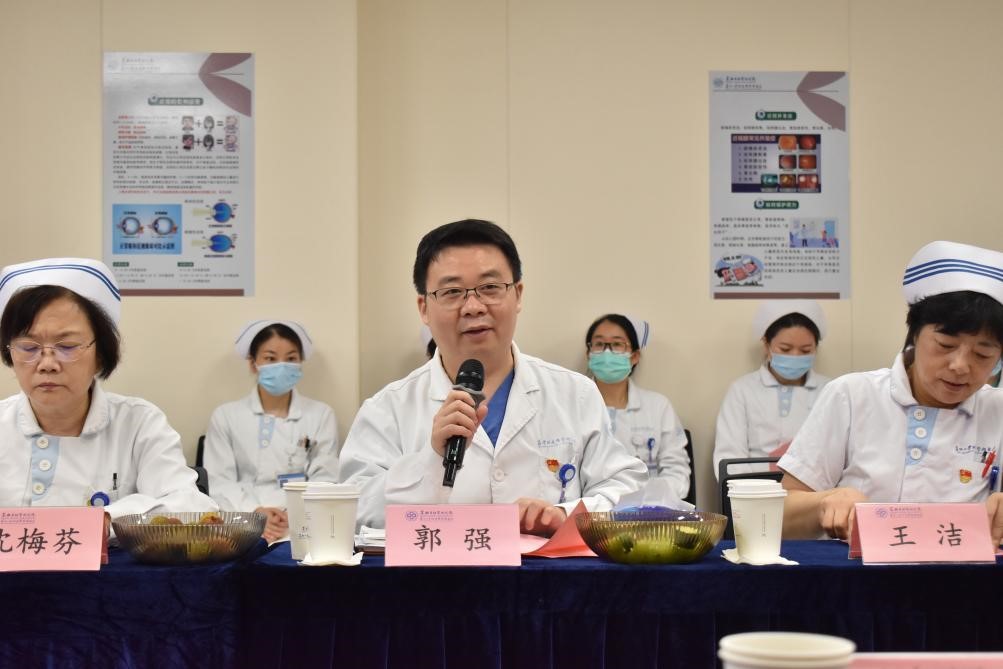 为进一步加深护理师生之间的了解,完善带教工作,提高护理实习教学工作质量及确定下阶段的实习教学重点,6月19日,苏州大学附属独墅湖医院护理部组织举行了2023年苏州大学护理学院院校协同调研会。苏州大学医学院副院长、护理学院党委书记龚政,苏州大学附属独墅湖医院党委委员、副院长郭强,护理部主任王洁,大科护士长沈梅芬、赵丹,苏州大学护理学院院长助理、综合办主任兼实践技能中心主任孟红燕,护理学院科研秘书、20级班主任郭道遐,护士长代表,临床带教老师代表及苏大护理实习生参加了本次调研会。本次会议由王洁主任主持。