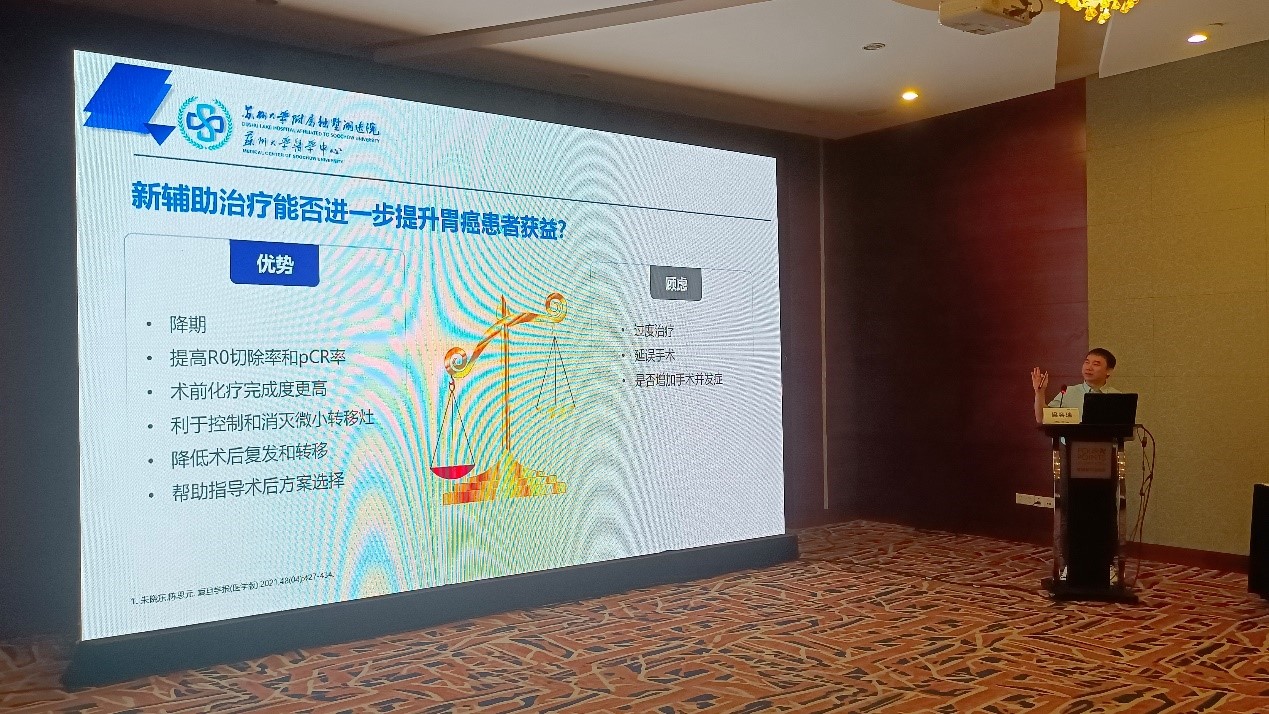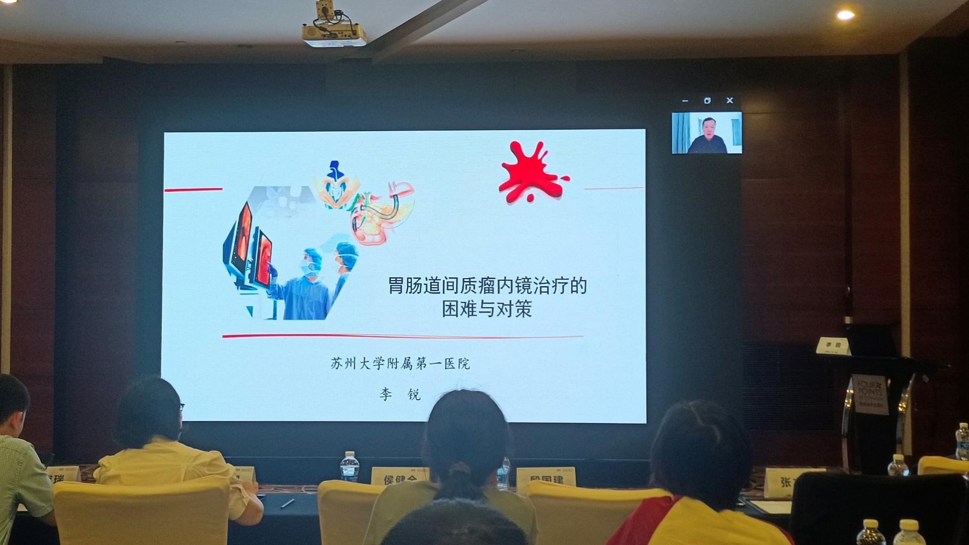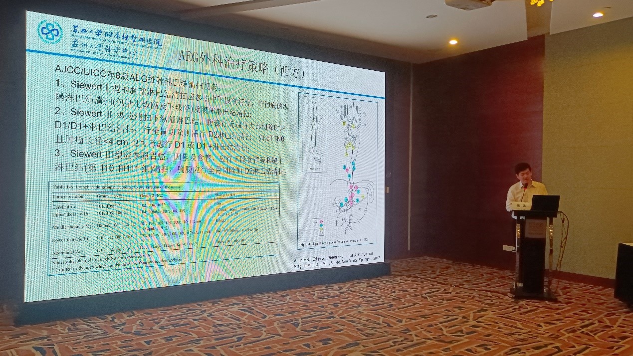 苏州大学附属独墅湖医院肿瘤科梁容瑞主任讲授了胃癌新辅助化疗的优势和目前存在的问题。苏州大学附属第一医院消化科李锐教授讲授了胃肠道间质瘤内镜诊治的困难与对策,并且分享了许多生动的案例。苏州大学附属独墅湖医院普外科张逸副主任为我们详细讲解了食管胃结合部腺癌的概念、分期及外科治疗策略。
