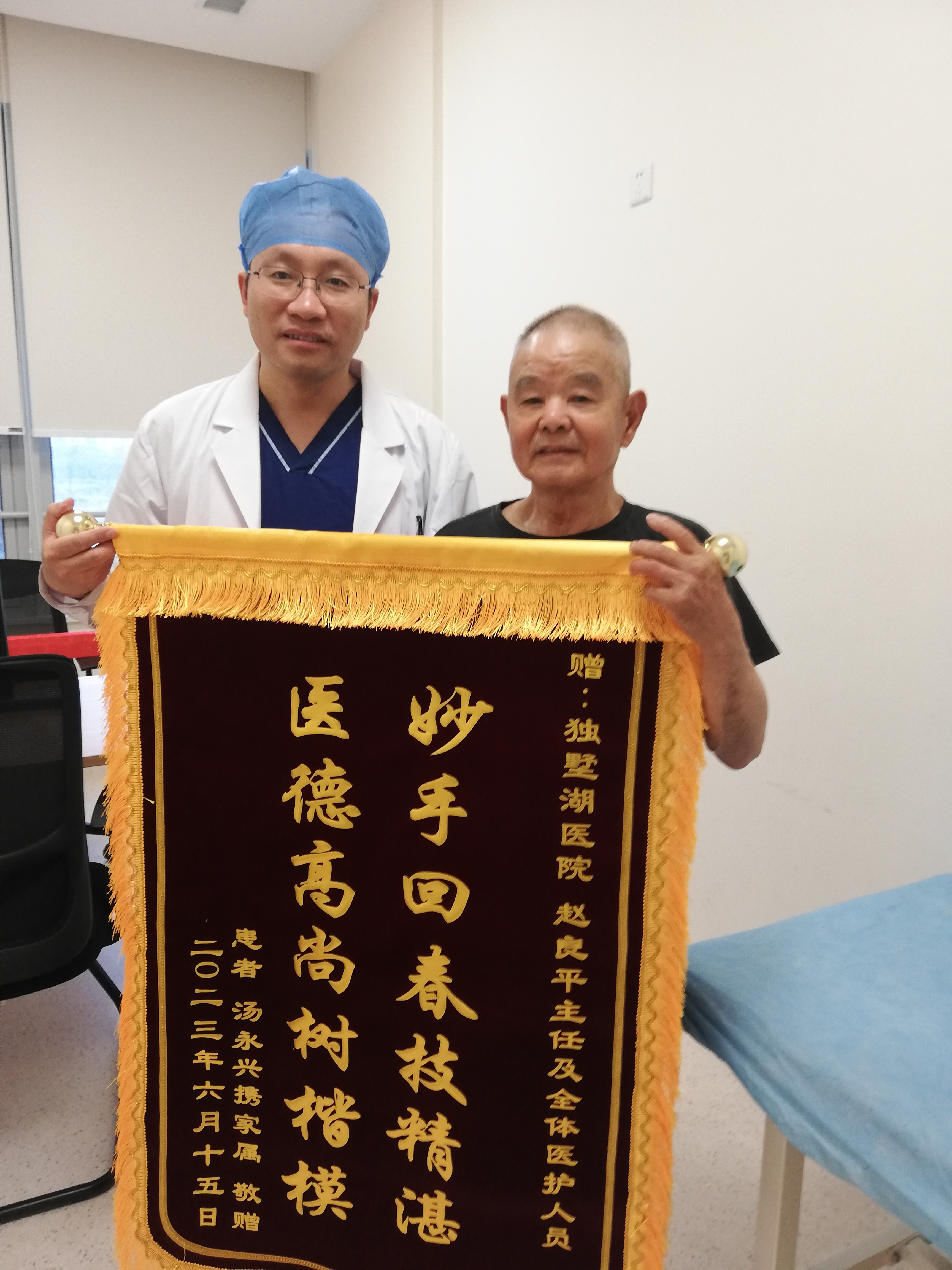 患者汤先生及家属赠送锦旗感谢我院心内科赵良平主任医师及全体医护