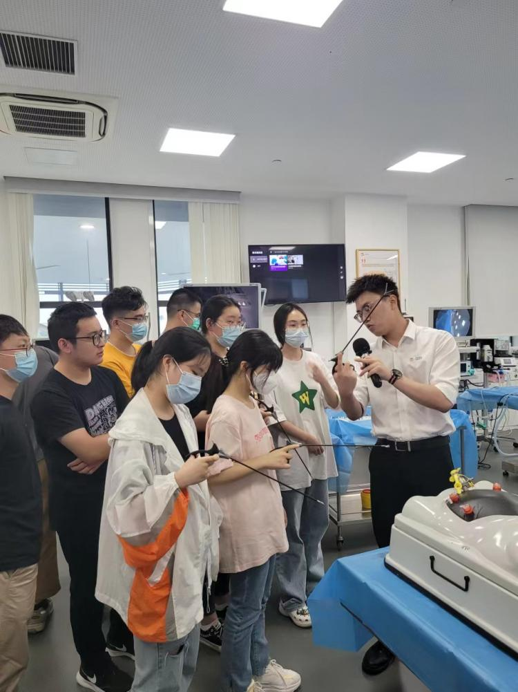 接下来的操作培训会上,蛇牌学院培训中心主讲人潘怡给同学们系统介绍了腹腔镜手术系统的相关知识,并让同学们亲自模拟体验了腹腔镜微创手术干式操作。同学们两两搭配积极参与。