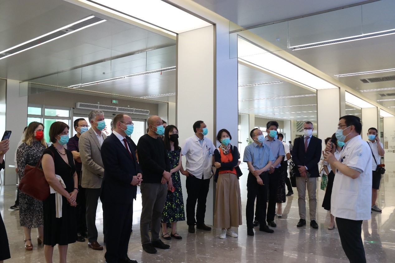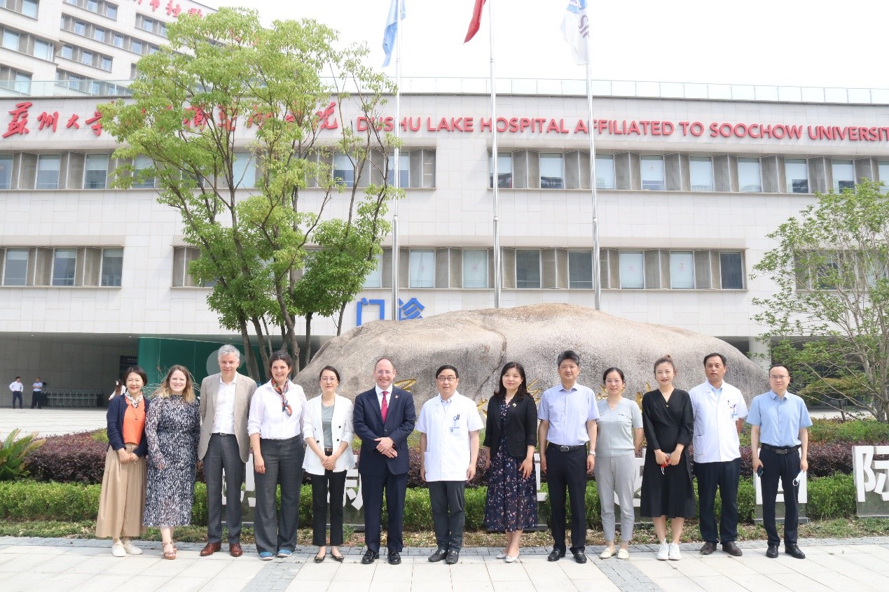 近日,瑞士驻上海总领事馆总领事邵凯文携瑞士考察团莅临独墅湖医院参观访问。苏州市人民政府外事办公室副主任金怡,苏州工业园区外事办公室副主任徐晓燕,苏州工业园区卫生健康委员会副主任巢为农陪同参观。独墅湖医院党委副书记、院长方琪,医院党委委员、院长助理于荣俊,党政办公室主任傅强等参加。