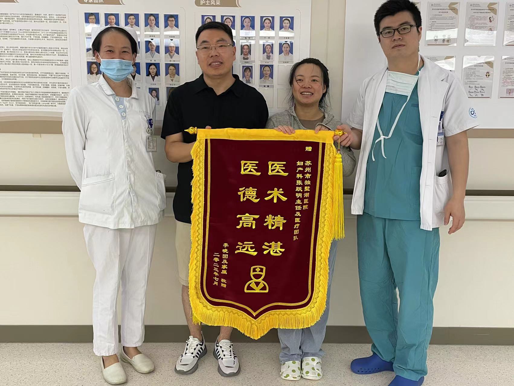 患者李女士及家属赠送锦旗感谢我院妇产科张跃明主任团队