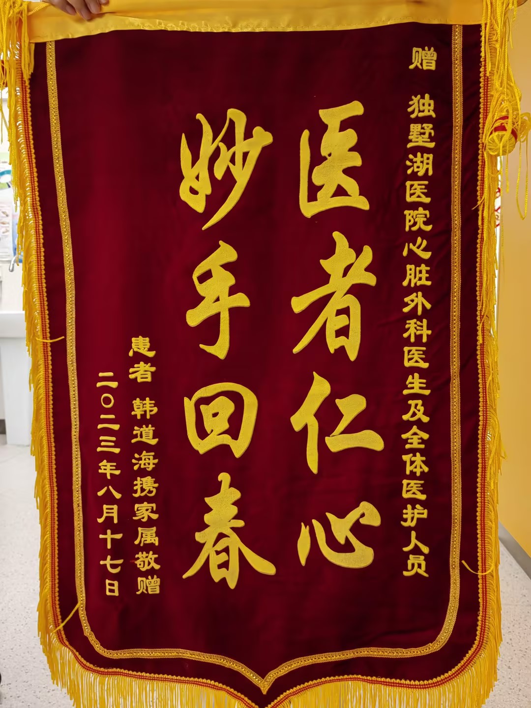 患者韩先生赠送锦旗感谢我院心内科全体医护