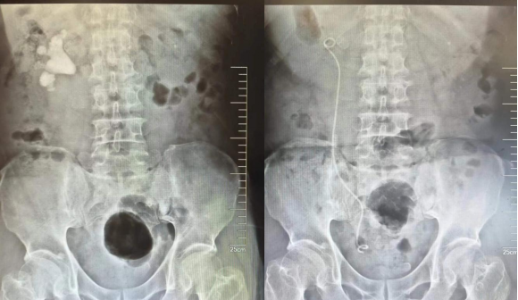 入院后的CT检查提示徐大爷肾脏内充满结石,属于泌尿系结石中治疗难度最大的“完全无积水鹿角型结石”。更为棘手的是,术前检查还发现,徐大爷的心脏有明显增大,主动脉瓣重度反流,心功能较差。面对这样一例复杂的肾结石病患,泌尿外科浦金贤主任组织多次病例讨论,分析病情,研究最佳手术方案。