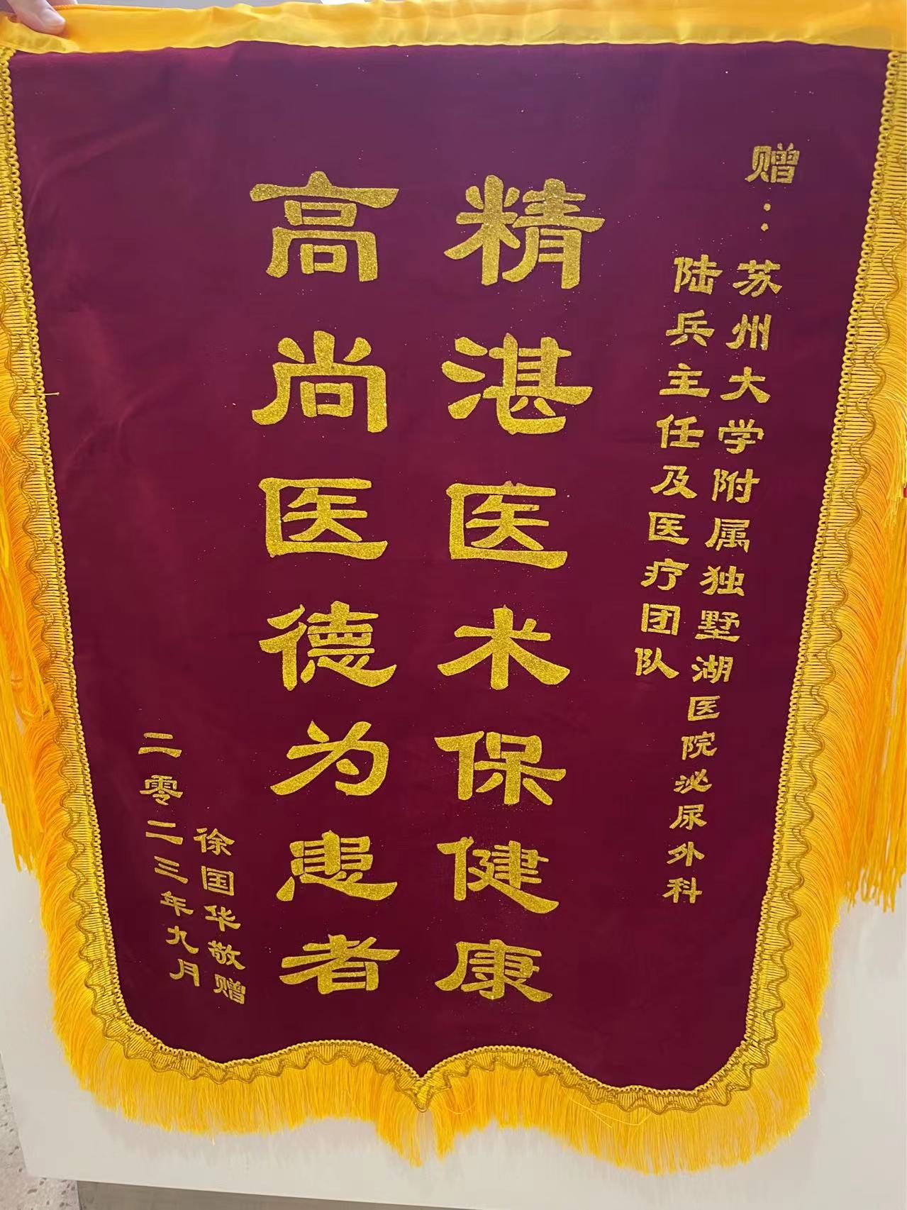 患者徐先生赠送锦旗感谢我院泌尿外科陆兵副主任医师团队