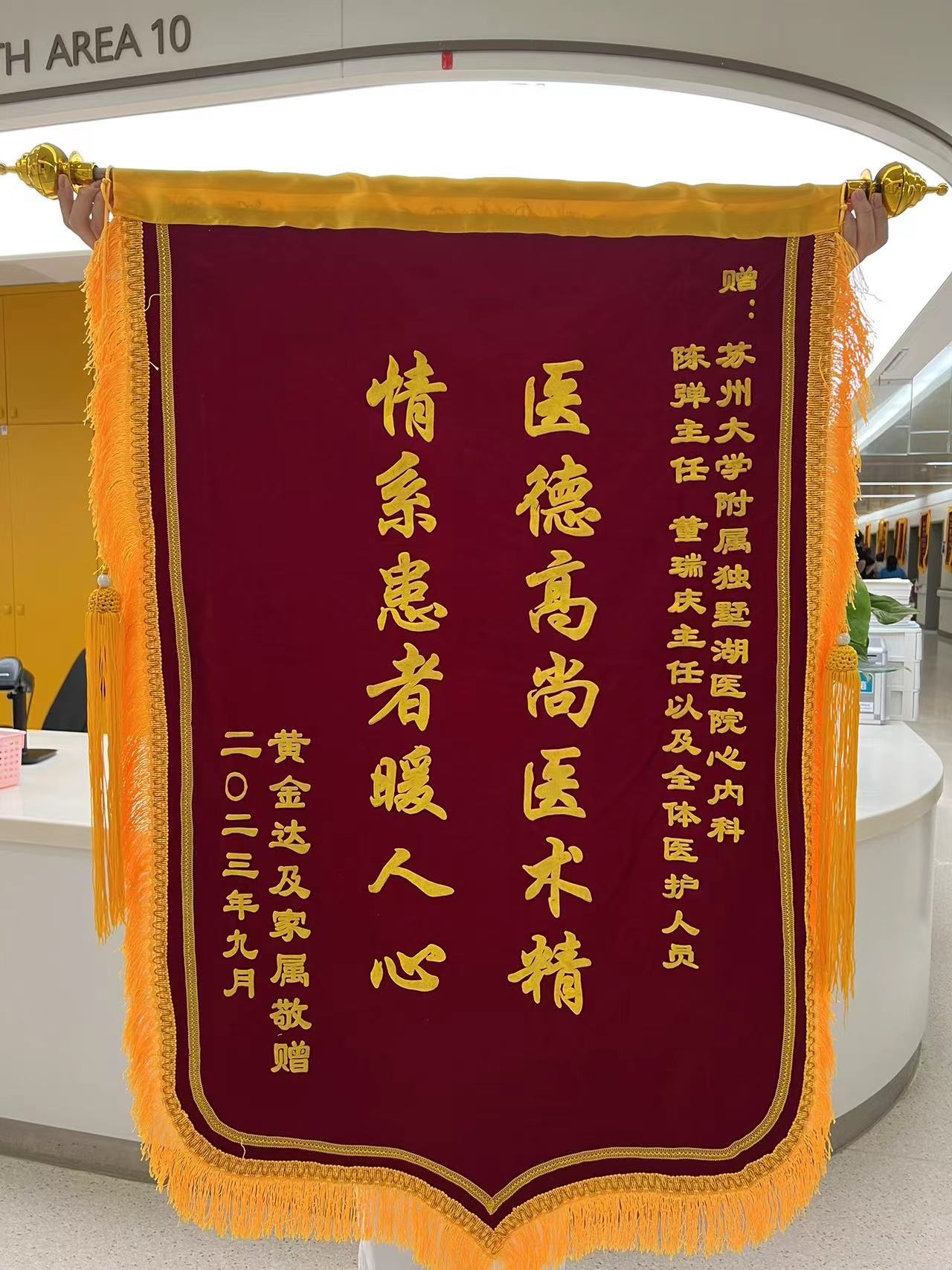 患者黄先生及家属赠送锦旗感谢我院心内科陈弹副主任、董瑞庆副主任医师及全体医护