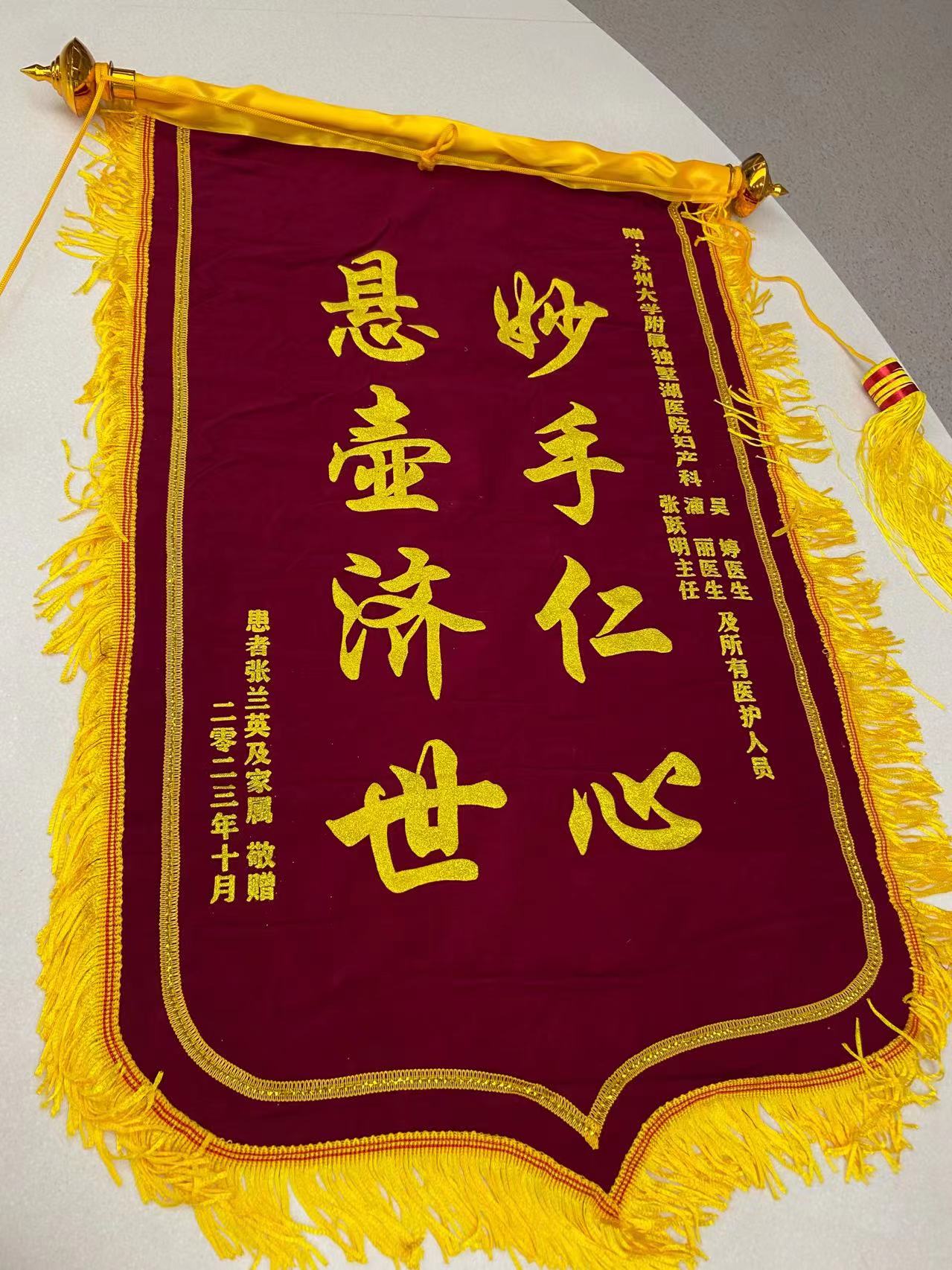 患者张女士及家属赠送锦旗感谢我院妇产科张跃明主任、蒲丽、吴婷医生及全体医护
