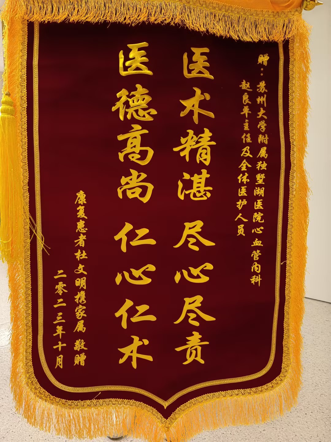 患者杜先生及家属赠送锦旗感谢我院心内科赵良平副主任及全体医护