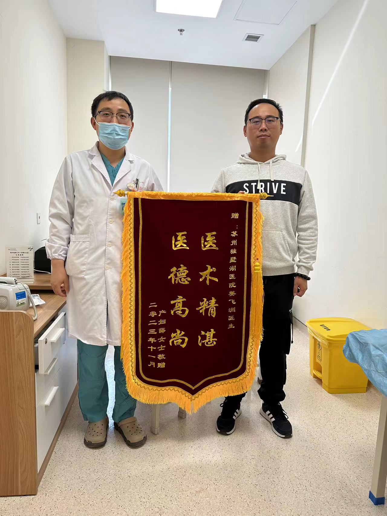 患者薛女士赠送锦旗感谢我院妇产科姜飞洲副主任医师