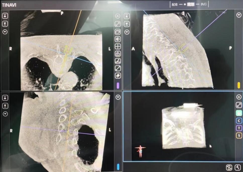 在多方打听后,抱着一线希望,丁老太家属带着患者来到了苏州大学附属独墅湖医院骨科姜为民主任的诊室。在充分了解丁老太的病情及诉求后,姜主任建议患者再次行椎体强化术。一家人经历了由绝望到希望的过程,但同时难免也有一丝担忧,因为此前的几位专家都告知他们无法手术。面对丁老太的难题,姜主任的自信不仅来自他多年积累的手术经验,还有我院新引进的第二代国产手术机器人的辅助。