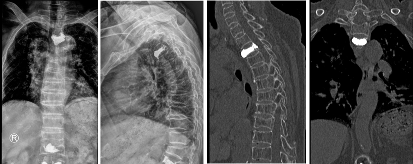 今年85岁的丁老太10天前在家里不小心摔了一跤,当即感到胸背疼痛不适,在家卧床休息数天仍不见好转。由于有过类似经历,丁老太之前摔跤后在当地医院做过椎体注射“骨水泥”的手术,且效果良好,于是家属想着大不了再打一次“骨水泥”就好了。随即到先前的医院检查,确诊是脊柱压缩性骨折,但与以往不同的是,这次是第三胸椎骨质疏松性压缩性骨折。第四胸椎以上由于位置特殊,手术操作难度大、风险高,通常是不做“骨水泥”手术的。当地医院的医生建议老太回家卧床休息保守治疗。随后患者和家属辗转就诊了几家医院,得到的建议都是保守治疗。难忍的疼痛及无法起床使老人陷入了绝望之中。