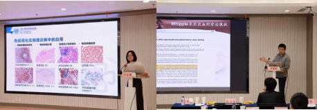 苏州大学附属独墅湖医院病理科干文娟主任以“免疫组化在消化系统肿诊断中的应用”为题进行了授课,使临床医生更深入了解了免疫组化中标志性分子在各类肿瘤中的特点。苏州大学附属第一医院消化内科叶建新副教授讲授了“WHIPPLE术后消化道出血的内镜诊疗”,分享了一系列高难度内镜下的诊疗操作,展现了精湛的内镜操作技巧,为胃肠外科术后并发症的治疗提供了参考依据。