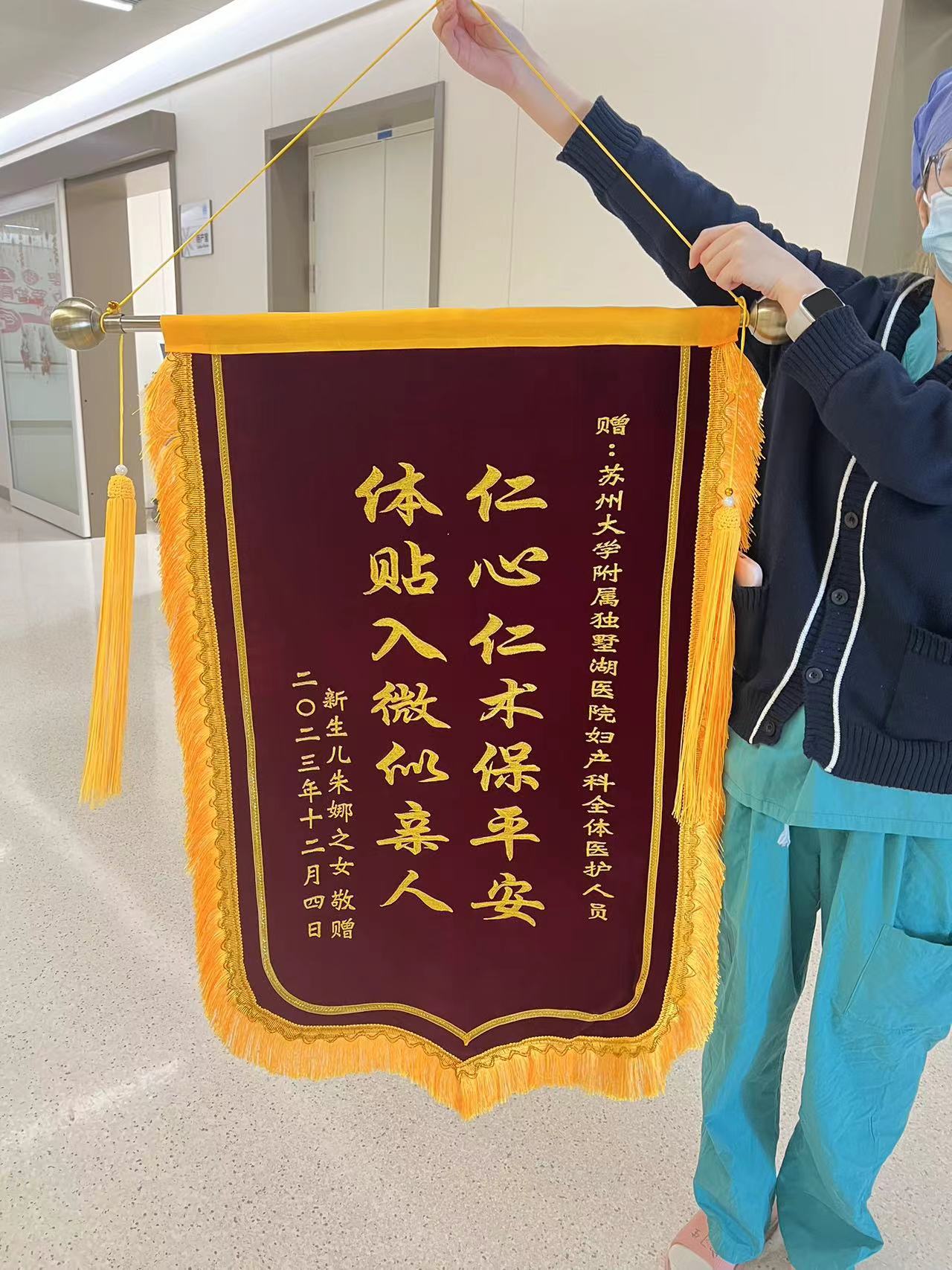 患者朱女士赠送锦旗感谢我院妇产科全体医护