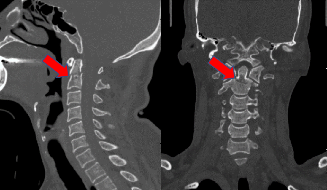 CT图像清晰显示患者C2齿状突骨折,并有移位
