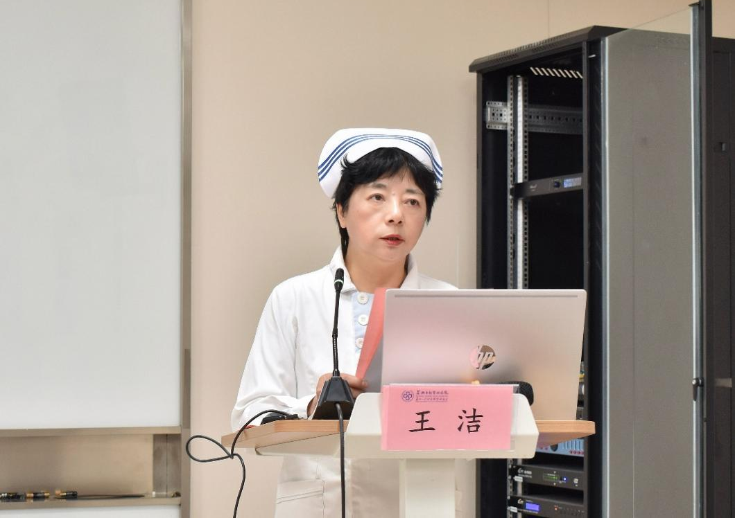 会议首先由护理部王洁主任致辞,对2023年度护理部取得的成绩给予了充分肯定。她表示,2023年度护理部严格落实医院五年发展战略,配合医院完成三级医院评审、电子病历五级评审等重要评审工作,取得了超越预期的成果。本年度中,我院护理队伍结构进一步优化,专科品牌建设不断推进,先后成立苏州工业园区护理质控中心、建设美国心脏协会BLS中心、推进“五大中心”区域化消毒供应中心等项目,各项工作开展助力园区优质护理资源下沉,联动区域医疗共同发展。希望借由本次会议,各位护士长能回首来时路,认清目标,发挥优势,找准“独墅护理”发展方向,为我院护理事业高质量发展贡献力量。