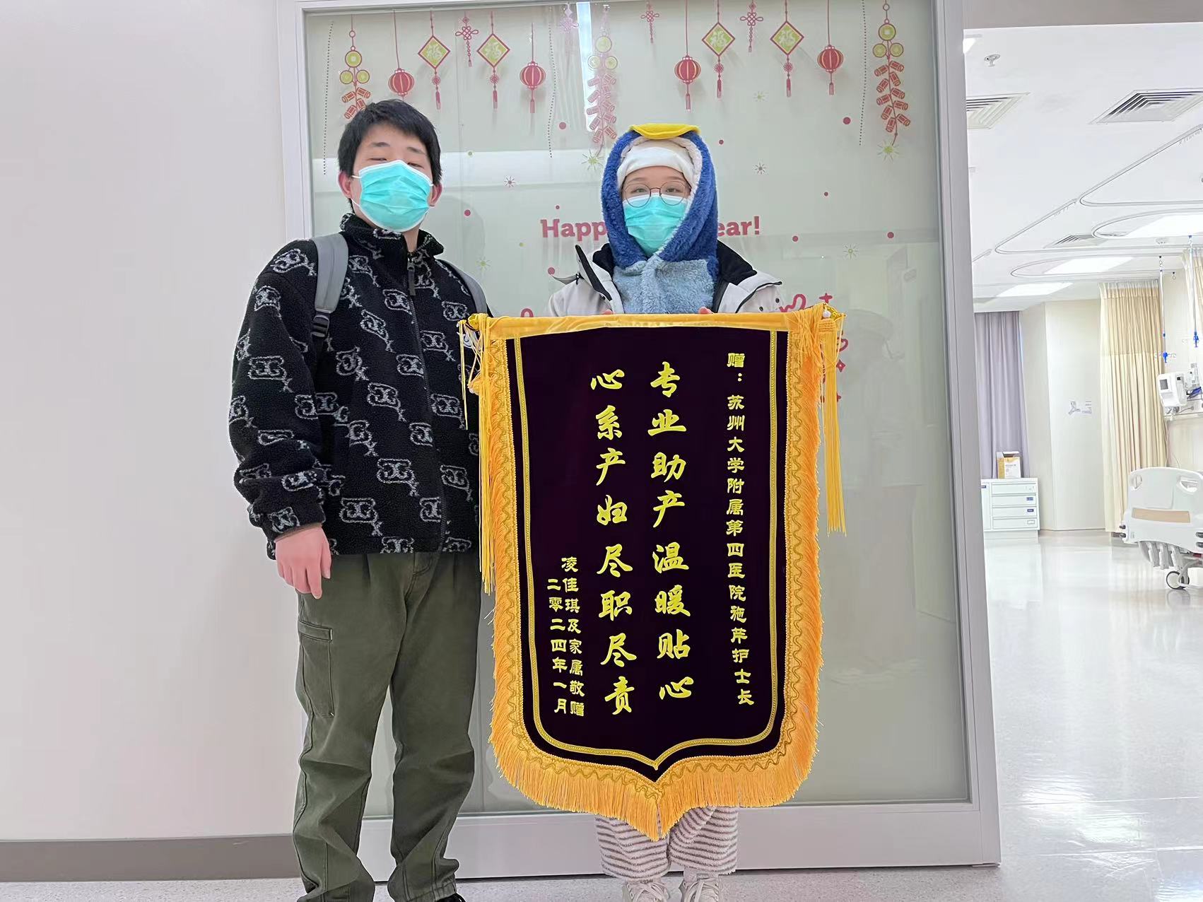 患者凌女士及家属赠送锦旗感谢我院产房护士长施芹