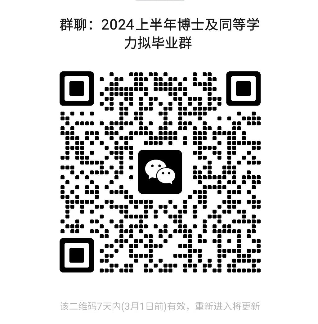 5、请2024年上半年拟毕业博士和同等学力学生扫码加入拟毕业群,方便联系。