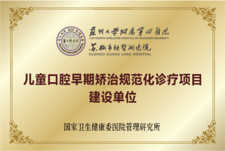 近日,国家卫生健康委医院管理研究所公布了全国儿童早期矫治规范化诊疗项目建设单位名单(第二批)。苏州大学附属第四医院(苏州市独墅湖医院)与南京医科大学附属口腔医院、南京医科大学附属儿童医院一起,成功入选全国儿童早期矫治规范化诊疗项目建设单位。