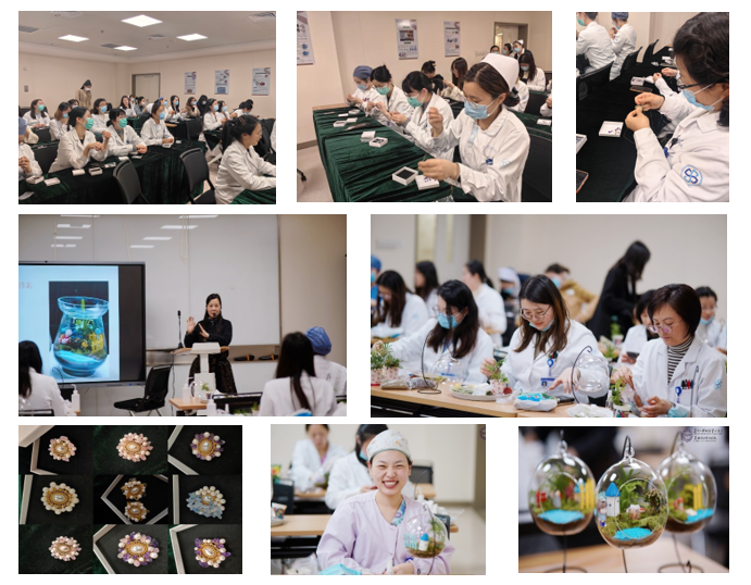 本次手作系列活动吸引了60位女性医护人员的积极参与。在这里,她们挥洒着创意,用双手制作出一件件独一无二的手工艺品。这不仅是一次简单的手工体验,更是一种心灵的放松和自我表达的方式。通过亲手制作,参与者们在享受创作乐趣、提升艺术修养的同时,也缓解了工作中的压力,增强了团队间的交流与合作。