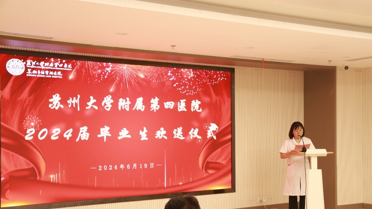 6月19日,苏州大学附属第四医院举办2024年研究生毕业欢送仪式。此次活动不仅是即将离开校园的学子们对求学生涯的告别,更是医院对他们未来医学之路的祝福与期许。苏大附四院党委书记侯建全,党委副书记、院长方琪,副院长周亚峰,科教处处长江淼,学位评定委员会委员以及2024届毕业研究生参加此次活动,毕业欢送仪式由科教处副处长仝瑞青主持。