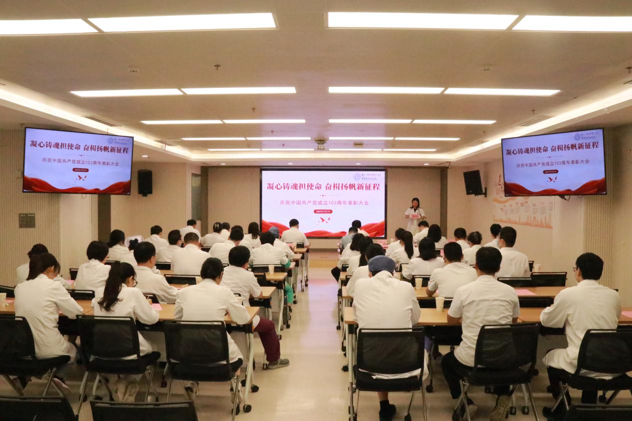 凝心铸魂担使命,奋楫扬帆新征程。医院党委始终坚持团结带领全体党员同志立足新征程、创造新业绩,秉承“以人民健康为中心”的发展思想,全面推进中国式现代化医院建设走深走实,以实际行动和优异成绩庆祝建党103周年!