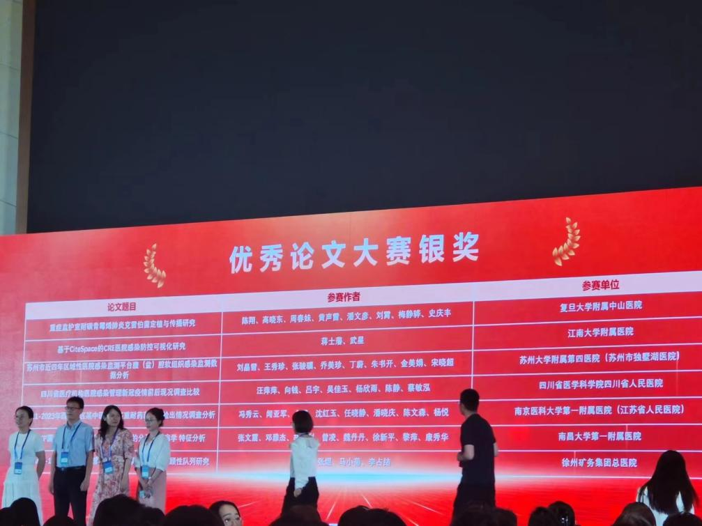 大会组织有学术论文交流活动,累计收到来自全国各地的论文500余篇。苏大附四院感染管理处报送有2篇论文,均入选优秀论文以及现场学术壁报交流名单,其中《苏州市近四年区域性医院感染监测平台腹(盆)腔软组织感染监测数据分析》一文获得大赛银奖,论文《基于系统化智能信息体系持续改进某三级医院建院初期的感染漏报率》获得大会优胜奖、并录用至中文核心期刊《中国感染控制杂志》。