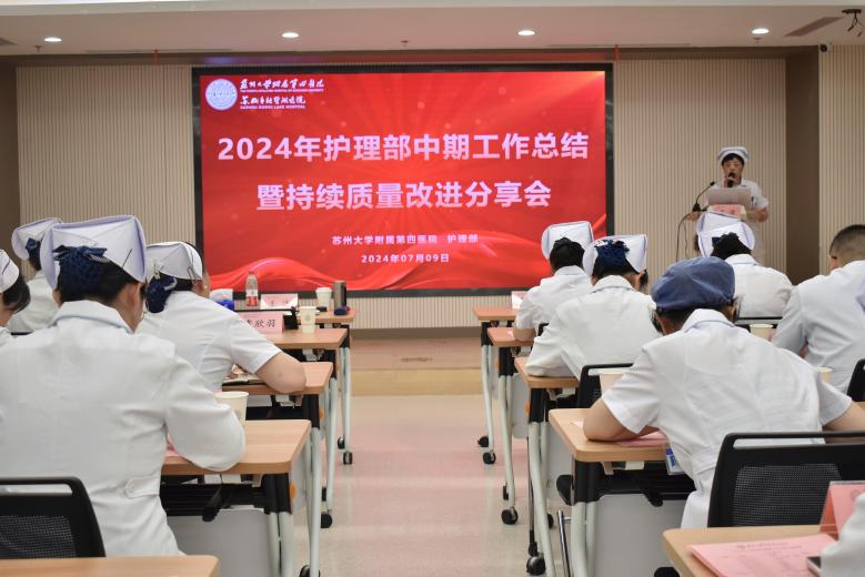 为积极落实国家卫健委《进一步改善护理服务行动计划(2023-2025)》政策,响应医院整体发展战略,稳步推进三甲创建工作,7月9日,苏州大学附属第四医院护理部召开了中期工作总结暨持续质量改进分享会。医院党委副书记、院长方琪,副院长郭强出席会议,护理部主任王洁,科护士长沈梅芬,科护士长赵丹及各病区护士长参加会议。