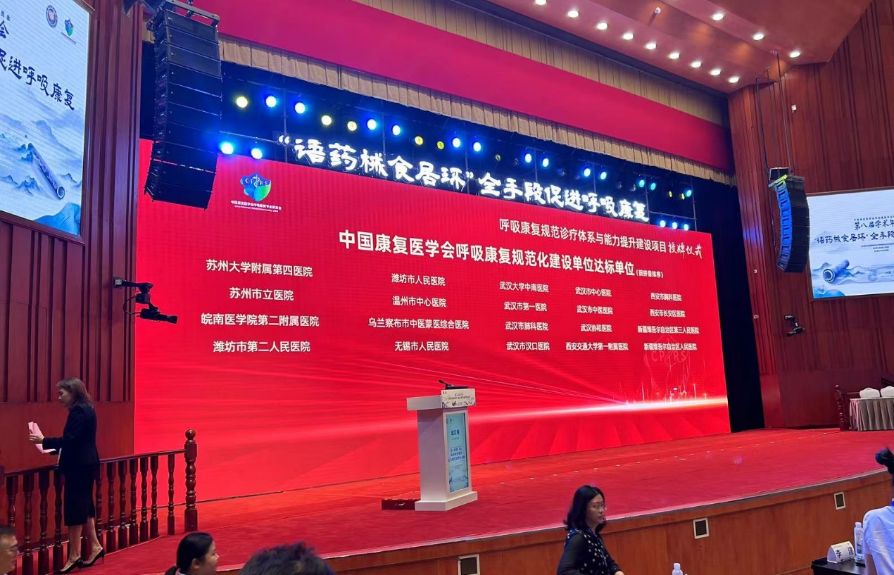 苏州大学附属第四医院获评中国康复医学会呼吸康复规范化首批建设单位
