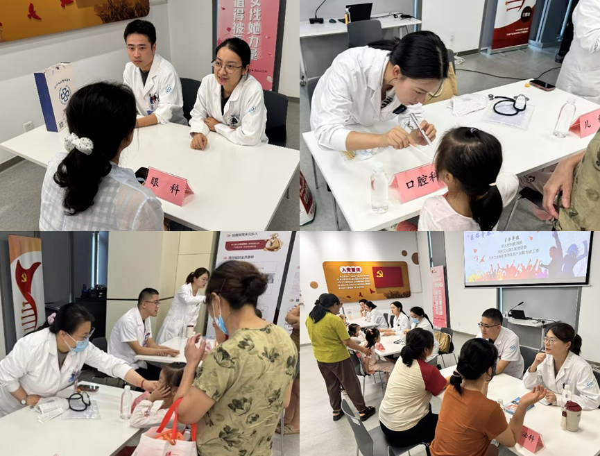 为满足企业青年职工及子女多样化健康需求,苏大附四院团委邀请眼科、口腔科、儿科、中医科和内分泌科五大科室具有丰富临床经验的医师开展现场义诊活动。眼科庄歆予医师和林文礼医师为现场青年职工提供了青少年儿童科学用眼指导及眼病咨询;口腔科王梦萍医师为到场的小朋友进行口腔检查并解答口腔健康疑问;儿科杨元元医师耐心细致地为孩子们进行健康检查、指导用药,并提供了一些日常生活建议;中医科尹谦医师通过望闻问切,为企业青年职工提供中医养生建议;内分泌科陈思予医师普及了健康饮食方式,并针对糖尿病等常见慢性病进行了科普讲解与咨询。